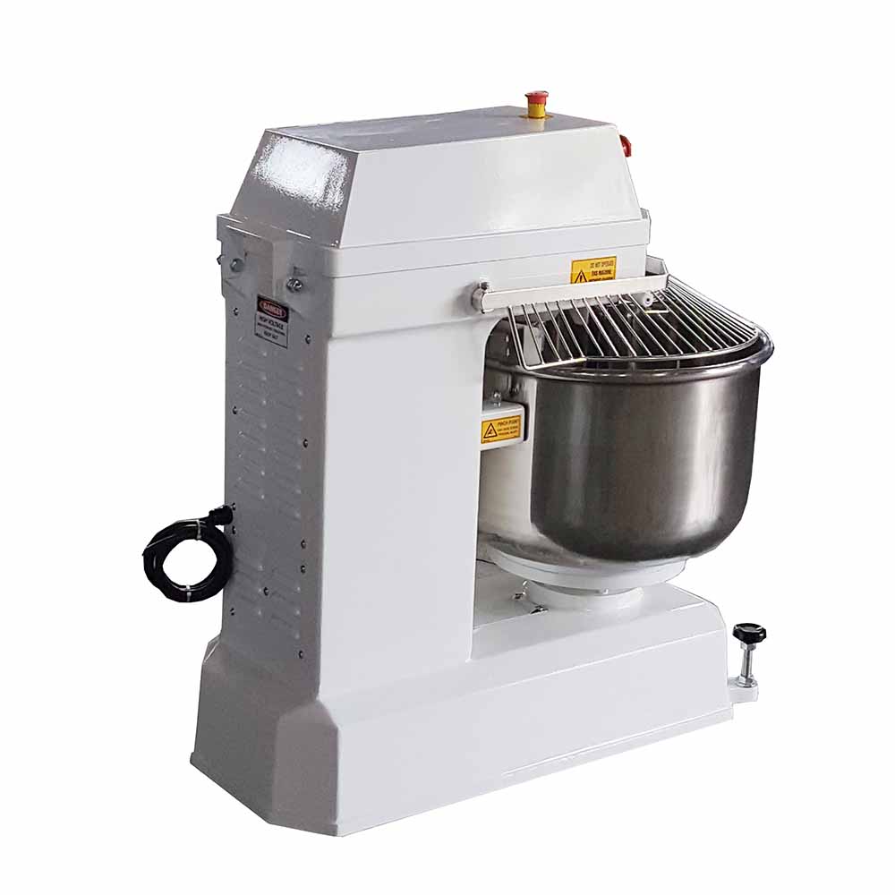 Strong enough for bagels, gentle enough for artisan dough, Taiwan made Stationary Bowl Spiral Mixers are available in a wide range of sizes, and can mix from 20 and 440 lbs. of flour. Coordinated 2-Speed spiral and bowl rotation gives maximum control of ingredient blending, dough development and better end product.